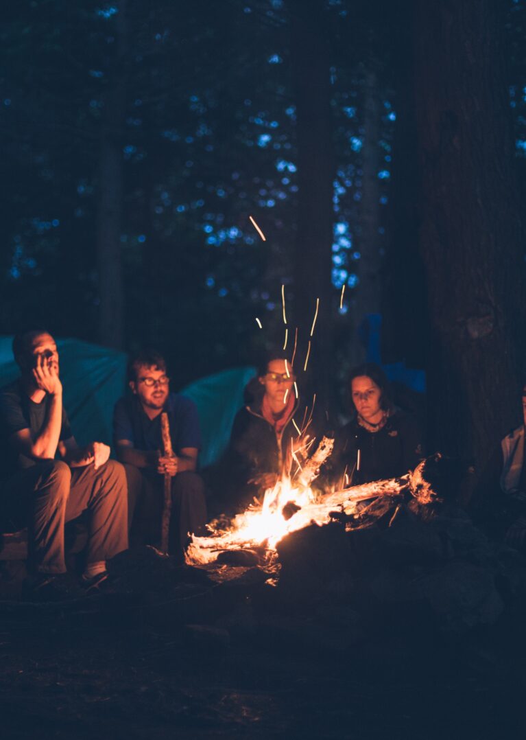 Stort bilde av folk rundt et bål Stort bilde av folk rundt et bål